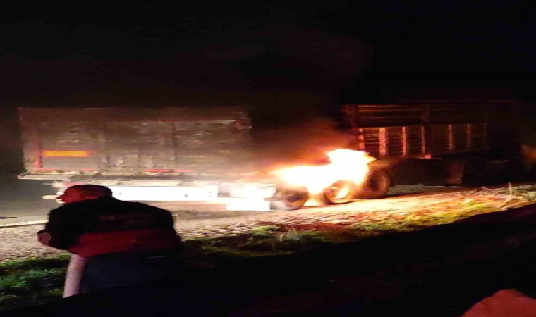 Alınan bilgilere göre, Mağrip köyü mevkiinde sürücüsü ve plakası bilinmeyen kamyonun lastik kısmından dumanlar yükselmeye başladı. Sürücü, durumu fark edip kamyonu yolun kenarında çekti. İhbar üzerine olay yerine gelen itfaiye ekipleri alevleri söndürdü. Kamyonda maddi hasar oluştu.