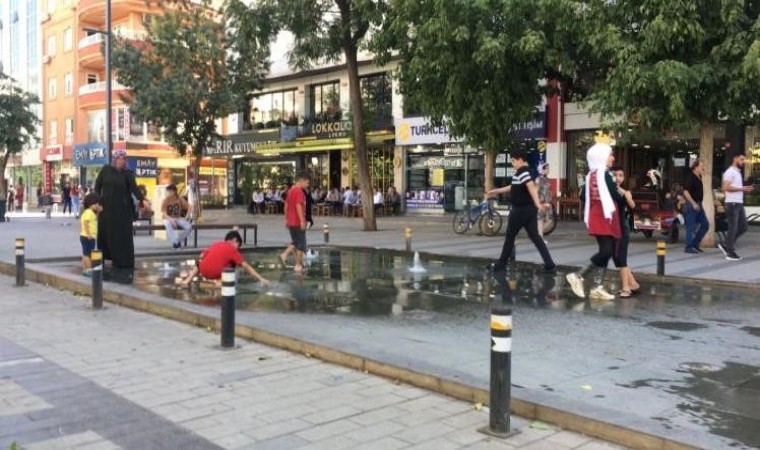 Hava sıcaklığının 38 dereceyi gördüğü Siirt’te çocuklar, Güres Caddesi’nde bulunan fıskiyelerin altında serinlendi. Fıskiyelerle oynamanın yasak olmasına aldırış etmeyen çocuklar, akan sular altında serinlemeye çalıştıkları görüldü.