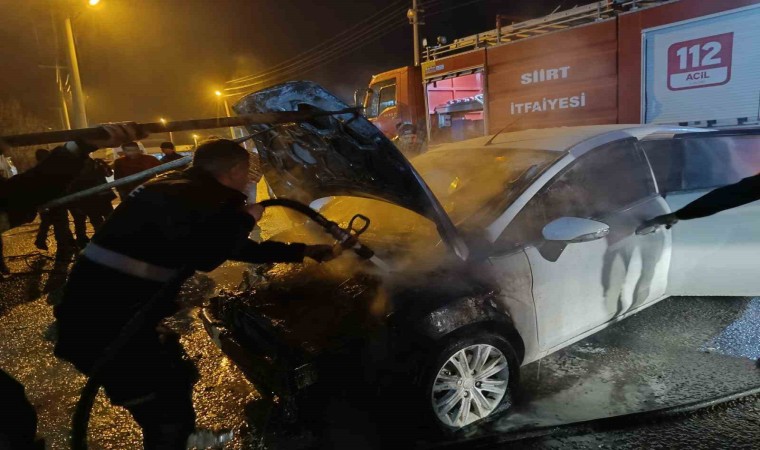 Alınan bilgilere göre, bakım için Siirt Küçük Sanayi Sitesine bırakılan 01 EEU 89 plakalı otomobil, henüz belirlenemeyen bir nedenle yandı. Yangın, ihbar üzerine olay yerine sevk edilen itfaiye ekipleri tarafından söndürüldü.