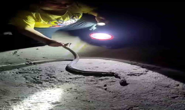 Siirt’in Eruh ilçesi Çizmeli köyünde bir binanın bahçesine giren yılan paniğe neden oldu.