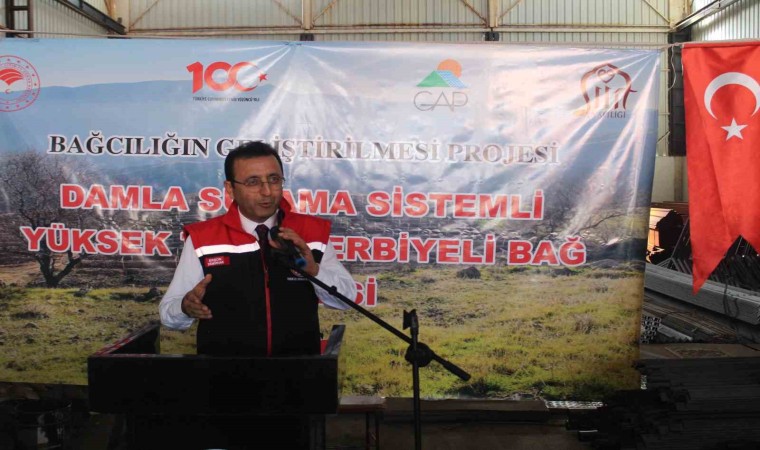 Siirt Valiliği ve GAP İdaresi Başkanlığı tarafından desteklenen Siirt İl Tarım ve Orman Müdürlüğünce yürütülecek "Damla Sulama Sistemli Yüksek Telli Bağ" projesi ile yüzde 70 hibe ve yüzde 30 Çiftçi katkısı ile Siirt’te ki çiftçilere malzeme dağıtımı yapıldı.