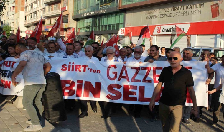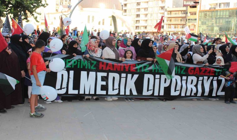 Siirt’te sivil toplum kuruluşları tarafından organize edilen yürüyüşte yüzlerce kişi, İsmail Haniye’nin öldürülmesini protesto etmek ve Filistin’e destek vermek için yürüdü.