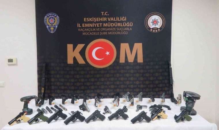 Edinilen bilgilere göre, Eskişehir Cumhuriyet Başsavcılığı’nın koordinesinde, İl Emniyet Müdürlüğü’ne bağlı Kaçakçılık ve Organize Suçlarla Mücadele Şube Müdürlüğü (KOM) ekiplerince, ‘Silah Ticareti’ne yönelik çalışmalar yürütüldü. Yapılan çalışma sonucunda 2 şüpheli yakalanırken, şüphelilerden birinin evini silah atölyesine dönüştürdüğü tespit edildi. Operasyon çerçevesinde şahsın evinde yapılan aramada; 26 ruhsatsız tabanca,2 pompalı tüfek, 134 değişik çap ve markalarda fişek, 6 dolu kartuş, 46 şarjör, 24 silah sürgüsü, 15 silah gövdesi, 10 tabanca namlusu, 7 icra yayı, 8 matkap ucu, 1 pafta takımı, 1 taşlama motoru, 1 şarjlı matkap, 2 hassas terazi ve 10 gram metamfetamin uyuşturucu madde ele geçirildi.