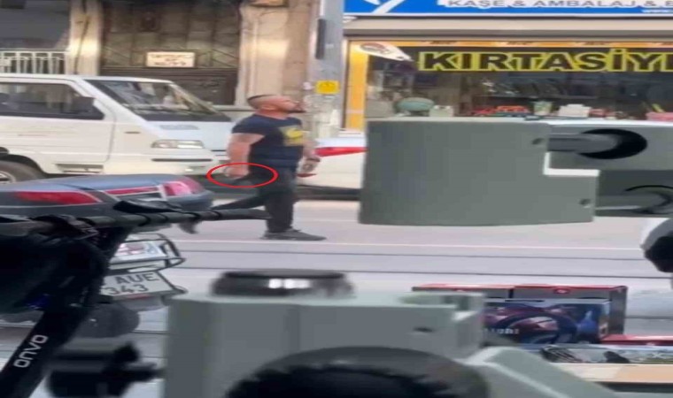 Bursa’da bir kişi cadde ortasında eline aldığı silahla tehditler savurup çevredekilere gözdağı verdi. Vatandaşların ihbarıyla polis ekipleri tarafından etkisiz hâle getirilen kişi gözaltına alındı.