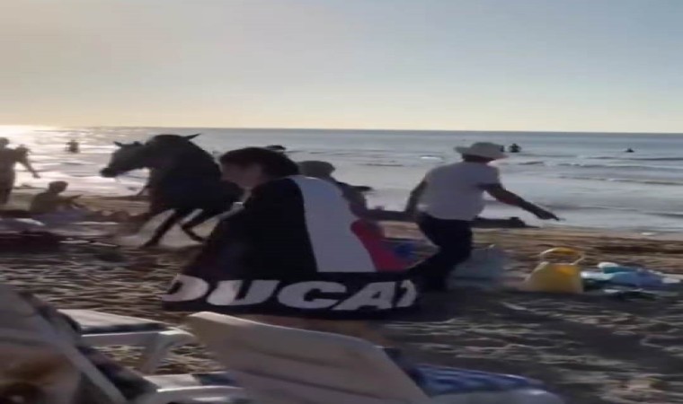 Olay, Şile’de bulunan bir plajda geçtiğimiz gün yaşandı. Edinilen bilgiye göre, iki genç sahibi oldukları atları plaja getirdi. Bir süre atların üzerinde plajda gezen gençler, atları ellerinden kaçırdı. Plajı birbirine katan atlar, yüzmek için plaja gelen yüzlerce insanın içine daldı. Sahil boyunca koşan atlar vatandaşları korkuttu. O anlar ise plajda yüzen bir vatandaşın cep telefonu kamerasına saniye saniye yansıdı. Vatandaşın cep telefonuna yansıyan görüntülerde iki atın, üzerindeki gençleri atıp bir anda yüzmek için plaja gelen vatandaşların arasına daldığı ve plaj boyunca koştukları görülüyor.