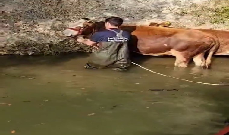 Şilede dereye düşen 4 büyükbaş kurtarıldı