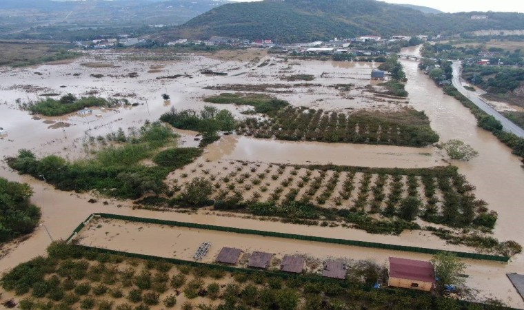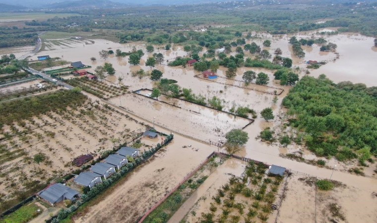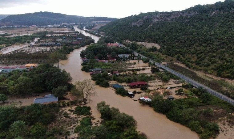 Şile’de etkili olan şiddetli yağış nedeniyle Yeşilçay Deresi taştı. Su altında kalan tarım arazileri, evler ve bungalovlar dron ile havadan görüntülendi.