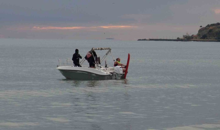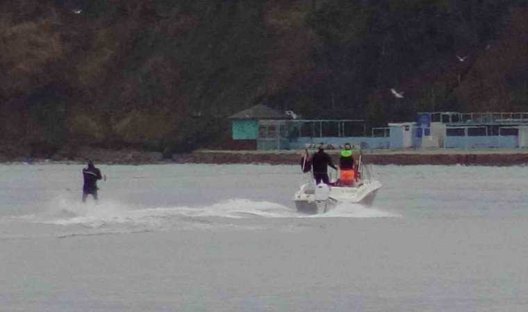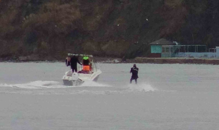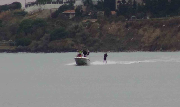 3 arkadaş su kayağı için tekneyle denize açıldı. Ardından dondurucu havaya rağmen sırayla denize giren arkadaşlar, su kayağı yaptı. Suyun üzerinde adata dans eden sporcular keyifli dakikalar geçirirken, izleyenleri de kendilerine hayran bıraktı.