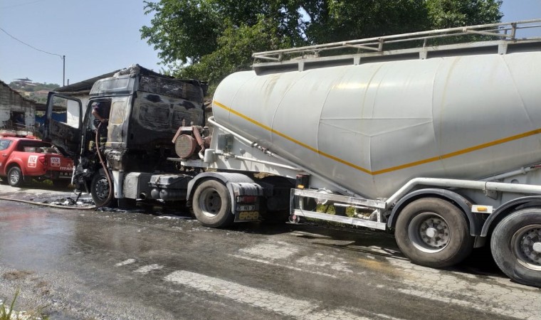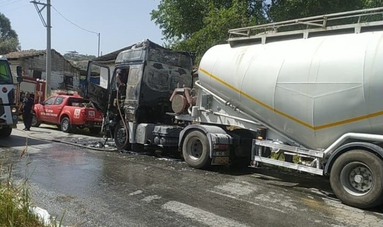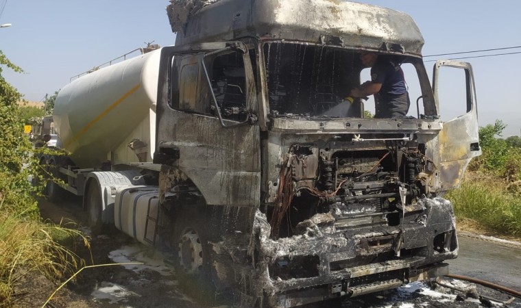 Aydın’ın Efeler ilçesinde seyir halindeki silo tankeri aracında çıkan yangın dakikalar içerisinde aracı demir yığınına çevirdi.