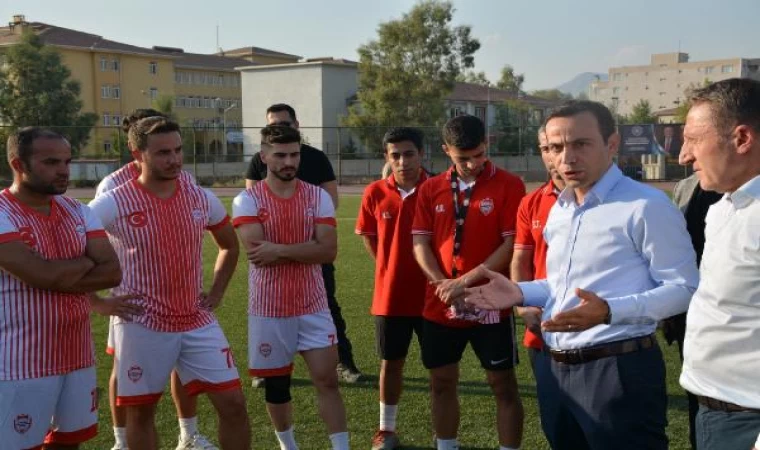 Konuşmanın ardından futbolculara tatlı ikramı yapıldı. Kaymakam Cihat Koç’a forma hediye edilmesinin ardından toplu fotoğraf çekimi yapıldı.(DHA)