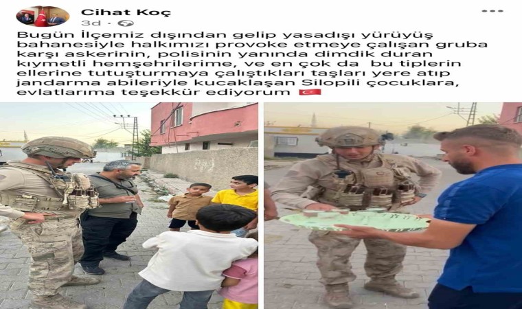 Silopi Kaymakamı Cihat Koç, sosyal medya hesabından yaptığı paylaşımda, söz konusu grubun şehir dışından geldiğini belirterek, jandarma personellerine ikramda bulunan vatandaşlara teşekkür etti. Kaymakam Koç, halkın güvenlik güçleriyle dayanışma içinde olduğunu vurgulayarak, provokasyonlara karşı dimdik durduklarını ifade etti. Koç, “Bugün İlçemiz dışından gelip yasadışı yürüyüş bahanesiyle halkımızı provoke etmeye çalışan gruba karşı askerinin, polisinin yanında dimdik duran kıymetli hemşehrilerime ve en çok da bu tiplerin ellerine tutuşturmaya çalıştıkları taşları yere atıp jandarma abileriyle kucaklaşan Silopili çocuklara, evlatlarıma teşekkür ediyorum.” dedi