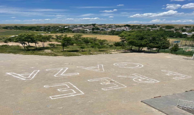 Diyarbakır’ın Silvan ilçesinde ortaokul öğrencileri, Filistinlilere hazırladıkları Türk Bayrağı ve "Gazze" koreografisiyle destek verdi.