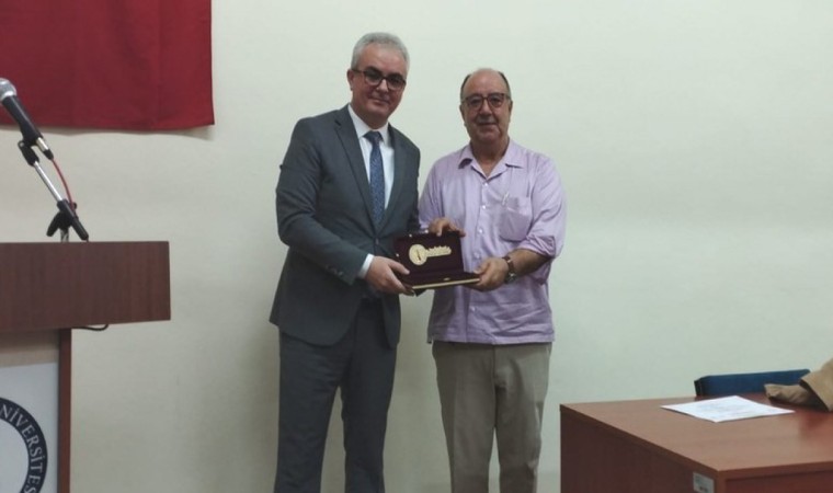 Seminer bitiminde Simav Meslek Yüksekokulu Müdürü Prof. Dr. Alaattin Kaçal, Prof. Dr. Faik Çelik’e teşekkür belgesi ve hediye takdim etti.