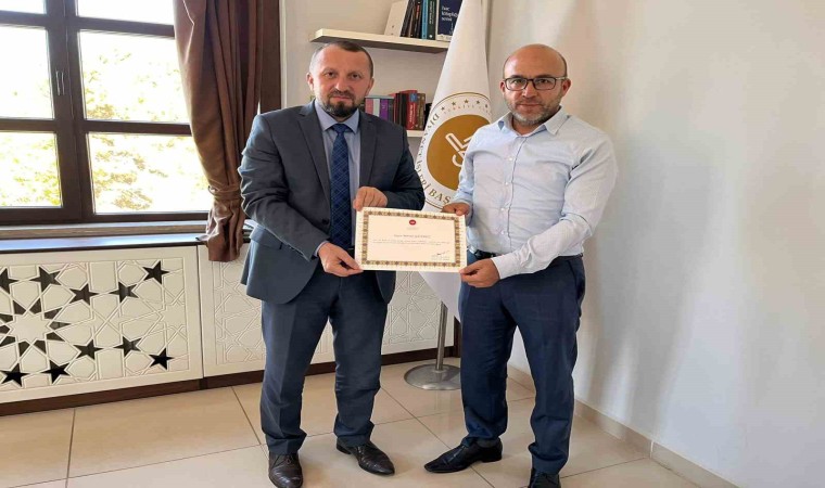 Kütahya’nın Simav ilçesinde 2024 yılında hatimle teravih namazı kıldıran personel ve hafız öğrencilere Diyanet İşleri Başkanı Ali Erbaş tarafından imzalanıp gönderilen teşekkür belgeleri teslim edildi.