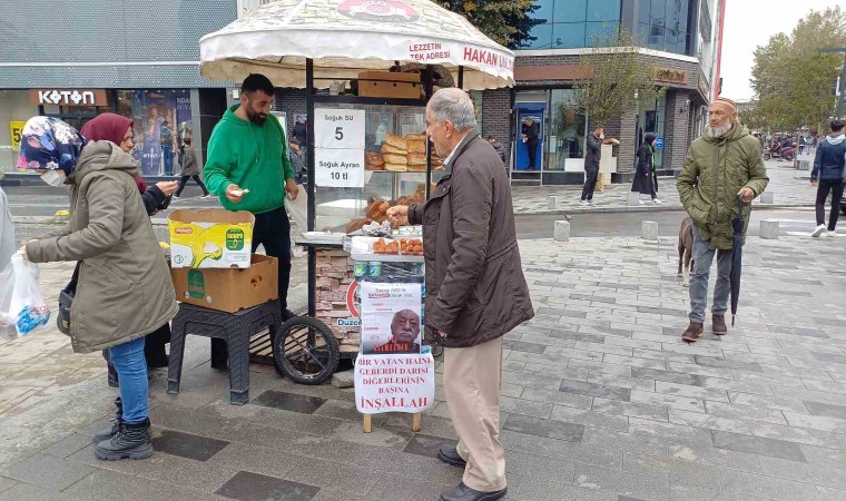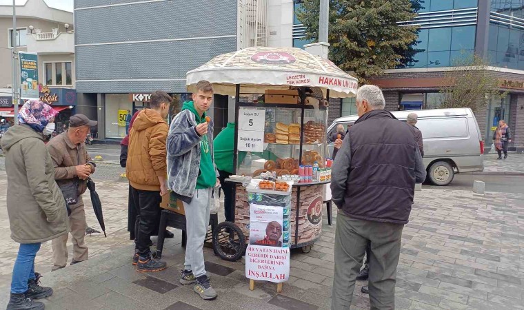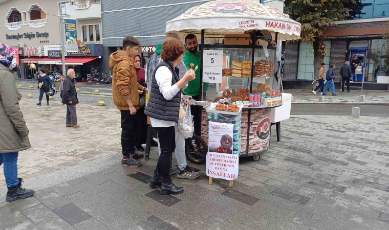 Düzce’de bir simitçi, FETÖ elebaşı Fethullah Gülen’in ölümünü vatandaşlara tatlı dağıtarak kutladı.