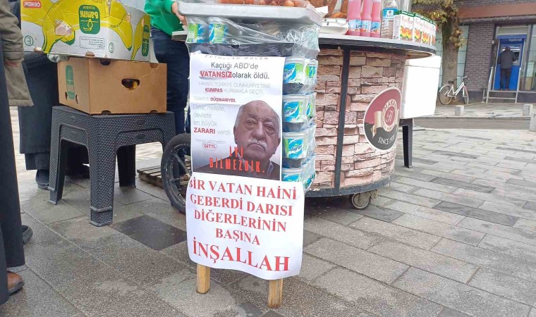 Düzceli simitçi Ercan Biltaş, FETÖ elebaşı Fetullah Gülen’in ölüm haberinin ardından vatandaşlara tatlı dağıtmaya karar verdi. Biltaş, simit tezgahına Türk bayrağı ve "Kaçtığı ABD’de vatansız olarak öldü. Hayatı, Türkiye Cumhuriyetine kumpas kurmakla geçti. Türkiye düşmanıydı" "Dine, millete, devlete en büyük zararı verdi. Hesap vermeden gitti. İyi bilmezdik" "Bir vatan haini geberdi. Darısı diğerlerinin başına inşallah" yazılı pankartlar astı.