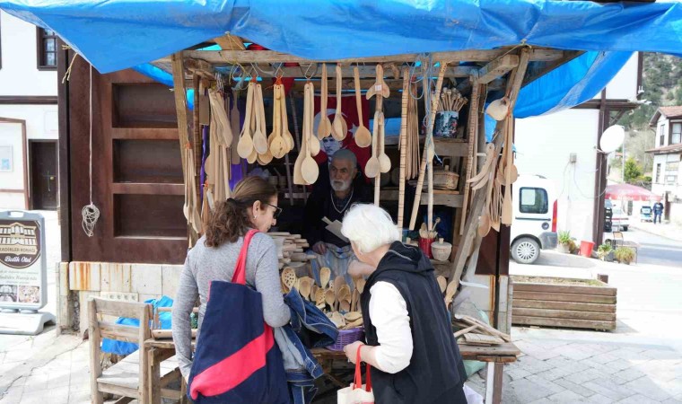 Taraklı ilçesinde yaşayan 82 yaşındaki Sami Yıldız ise 68 yıldır az sayıda usta tarafından el emeğiyle üretilen ve coğrafi işarete kavuşan şimşir gereçleri üreterek geçimini sağlıyor. İlçe meydanında derme çatma kurduğu tezgahta ürünlerine şekil veren Yıldız, faydalarının saymakla bitmediği gereçleri müşterilerine sunuyor. Şimşir gereçlerinin özellerinden söz eden Yıldız, “Yaşım 82 ve 14 yaşından beri bu mesleği yapıyorum. Evimde ham malzemeleri şekillendiriyorum buraya gelince de ince işçiliğini yaparak misafirlerimize ham satışını hem de tanıtımını yapıyorum. Şimşir kaşık içinde bakteri barındırmaz, dişlere sağlık veriyor. Bilhassa şimşir tarak, saça güç verip sedef hastalığını önlüyor. Kaşıkların fiyatı 20 liradan 200 liraya, tarakların fiyatı ise 100 ila 200 lira arasındadır. Şimşir taraklar doktorlar tarafından da tavsiye edilir. Bilhassa şimşir tarak bu yaştan sonra benim saçımı çıkardı ama ağacın kendisi değil suyu bu işlevi yaptı. Çocuk yaşımdan beri bu meslekte ev ihtiyaçlarımı karşılıyorum. Bu meslekte daire veya farklı bir şeyler alacağım diye bir durum yok. Bu meslekte küçük bir düğün yaptık, oğlumu askere gönderdim” dedi.