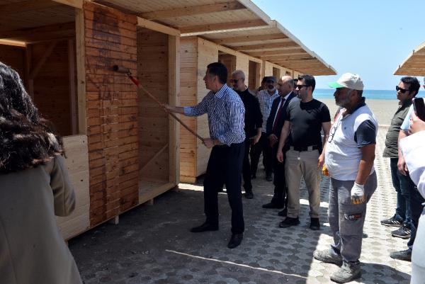 Afet bakanlığı kurulması gerektiğine vurgu yapan Oğan, "Buradaki eksikliklerin en büyük sebebi; Türkiye'de bir afet bakanlığının bulunmaması. Milletvekiliyken afet bakanlığının kurulması teklifini vermiştim ancak kabul edilmemişti. Bir numaralı kararnamem; Suriye, Afgan ve Pakistanlıların ülkelerine gönderilmesi, diğeri ise afet bakanlığı kurmak olacak. Bakanlığı kuracağız ve bu tür konteyner kentleri demirden değil; ahşaptan yapacağız. Çünkü demirden evler, bu bölgenin iklimine uygun değil. Maşallah ahşap konteyner, püfür püfür esiyor" dedi. Daha sonra boya rulosunu alan Oğan, ahşap konteynerleri vernikledi. Oğan, vatandaşlar ile hatıra fotoğrafı çektirip, İskenderun ilçesine geçti. (DHA)