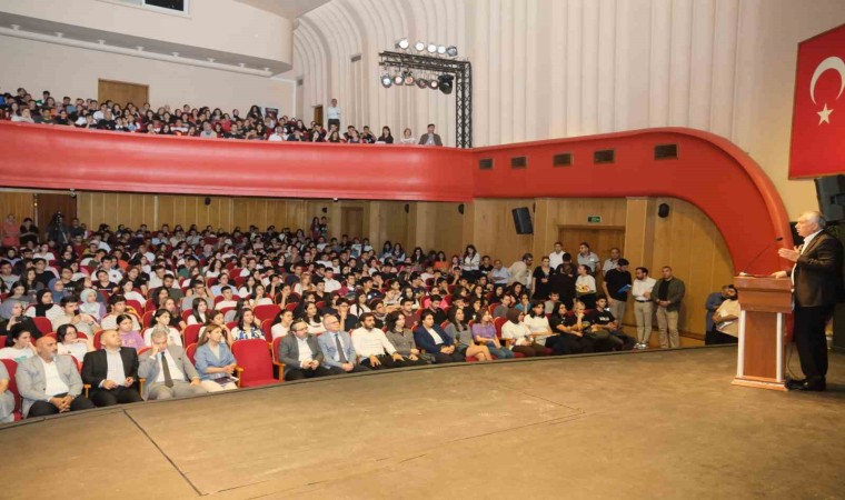 Dersi derste öğrenmeye çalışmanın çok önemli olduğunu belirten Başkan Zeydan Karalar sözlerini şöyle sürdürdü: “Sadece son yılınızda ders çalışmaya yüklenmeyin. Can kulağı ile dersi derste dinleyin. Ders çalışmak bir süreç. Ders, derste öğrenilir. Dersi derste dinleyip, matematiğin, fiziğin, tüm derslerin temelini on bir yıllık eğitim boyunca alırsanız, son yıla zaten çok fazla yükünüz kalmaz. Geriye kalan zamanı tekrar yaparak, soru çözerek geçirirsiniz. İşi son yıla bırakmak doğru bir yöntem değil. 11 yıl boyunca bize verileni depolasak işimiz daha kolay olacak.”