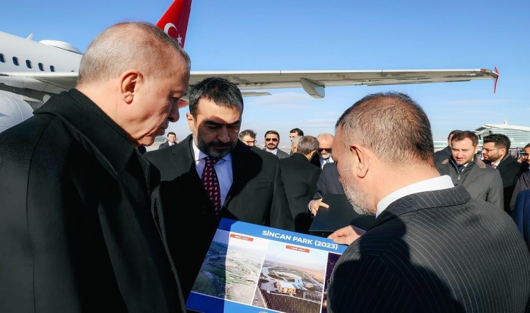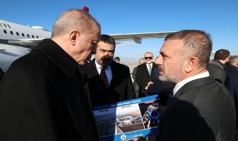 Cumhurbaşkanı Recep Tayyip Erdoğan’ı havalimanında karşılayan Sincan Belediye Başkanı Murat Ercan, Sincanla ilgili projelerini Cumhurbaşkanı Erdoğan’a sundu.