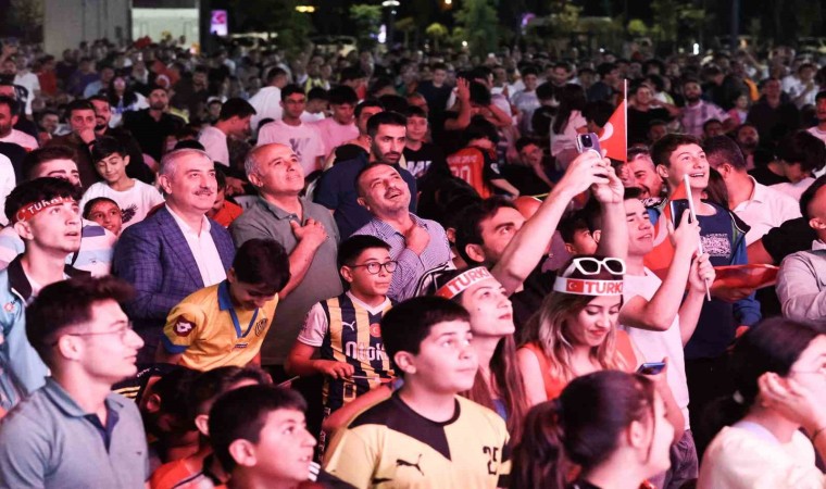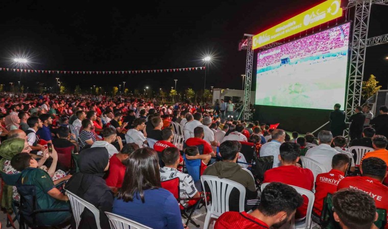 Ankara’da Sincan Park’ta Türkiye-Avusturya maçı için kurulan dev ekranda vatandaşlar milli heyecan yaşadı.