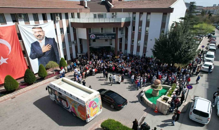 Yerel seçimlerin ardından mazbatasını alan Sincan Belediye Başkanı Murat Ercan’ı belediyenin önünde coşkulu bir kalabalık karşıladı. AK Parti İlçe Başkanı Mustafa Özcan ile birlikte belediye binasına gelen Ercan, belediye personeli ve vatandaşların tebriklerini kabul etti. Başkan Ercan’a çiçek takdim eden personel, “Hayırlı olsun” dileklerinde bulundu. Kendisine duyulan teveccüh karşısında duygulanan Başkan Ercan, çalışma arkadaşlarına teşekkür ederek, “Bu coşkulu karşılama için hepinize çok teşekkür ediyorum. Vatandaşımız beş yıl daha bize yetkiyi verdi. Seçim sonuçları bunu ortaya koydu. Bugün de gittik mazbatamızı aldık. Biliyorum ki geçtiğimiz dönem boyunca çok güzel yatırımlar, eserler ortaya koyduk ve hiçbir gerekçeye sığınmadık. Hiçbir şeyi bahane etmeden hizmete devam edeceğiz. Vatandaşın gönlüne girdik, gönlünde de kalacağız. Giremediklerimizin de gönlüne gireceğiz. Belediye demek hoşgörü demek, güleryüz demek. Dolayısıyla bu duruşla çalışmalarımıza bugüne kadar devam ettik. Bundan sonra da bu yolda yürümeye devam edeceğiz” dedi.