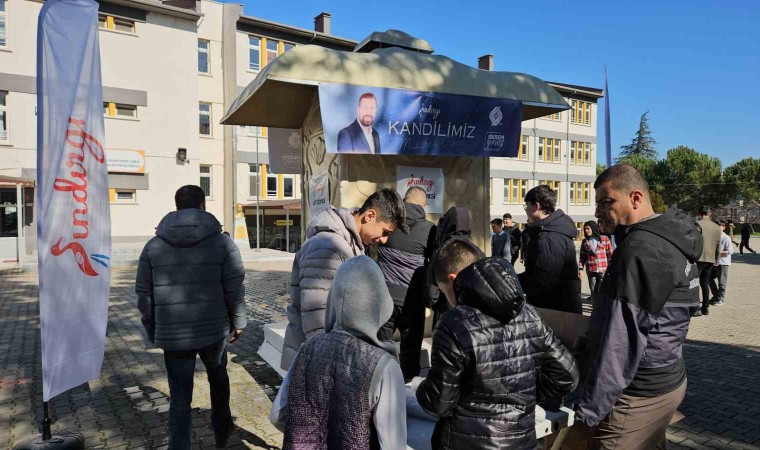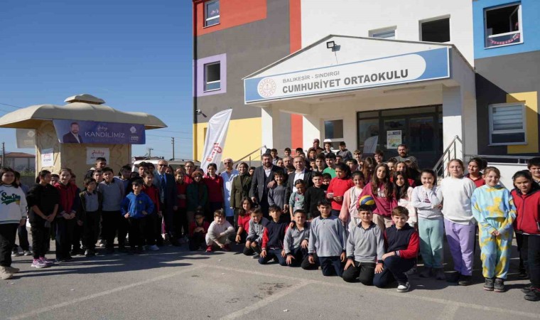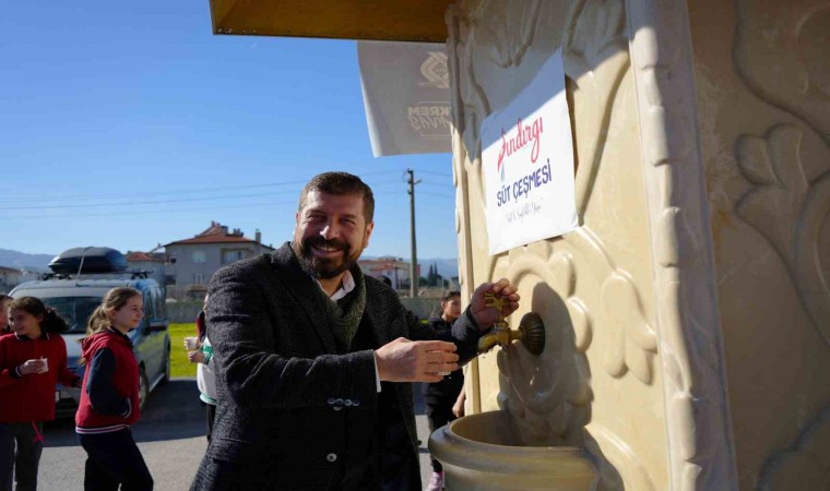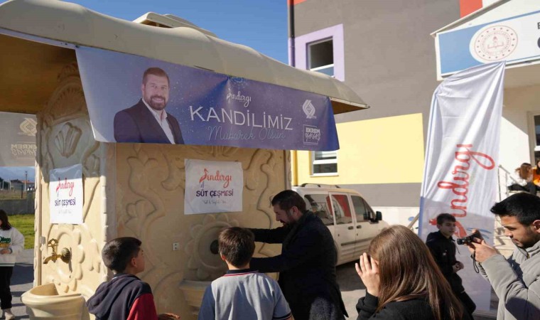 Balıkesir’in Sındırgı ilçesinde, Miraç Kandili dolayısıyla öğrencilere süt çeşmesinden süt ikram edildi.