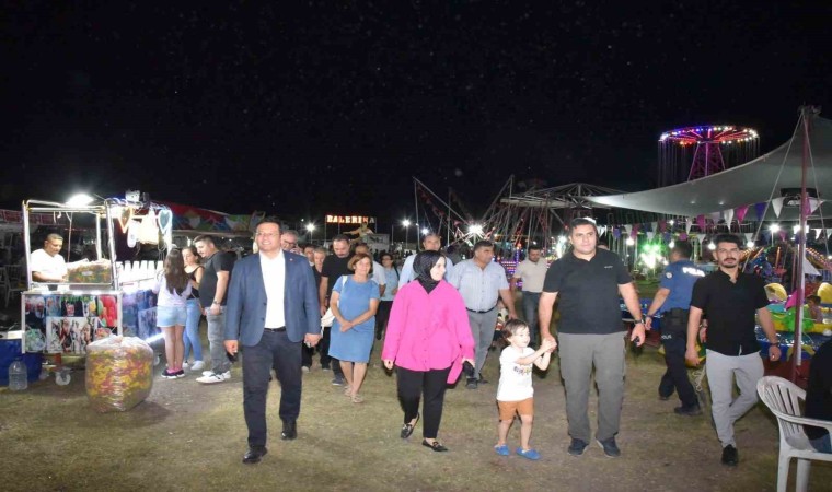 İlçe kaymakamı Didem Dinç Özay ve Sındırgı Belediye başkanı Serkan Sak ile birlikte panayırda esnaf ve vatandaşları ziyaret etti.
