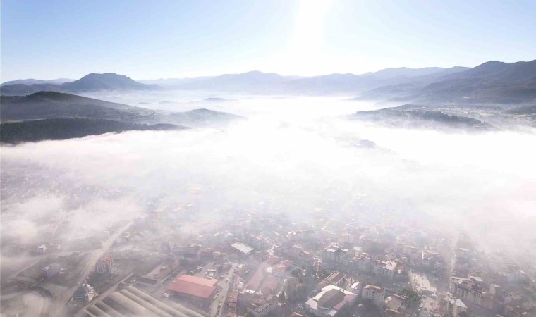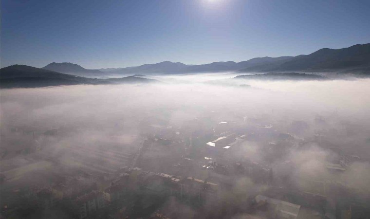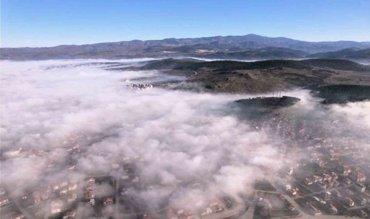 Balıkesir’in Sındırgı ilçesinde etkili olan sis, kartpostallık manzaralar oluşturdu. Sis manzarası dron ile görüntülendi.