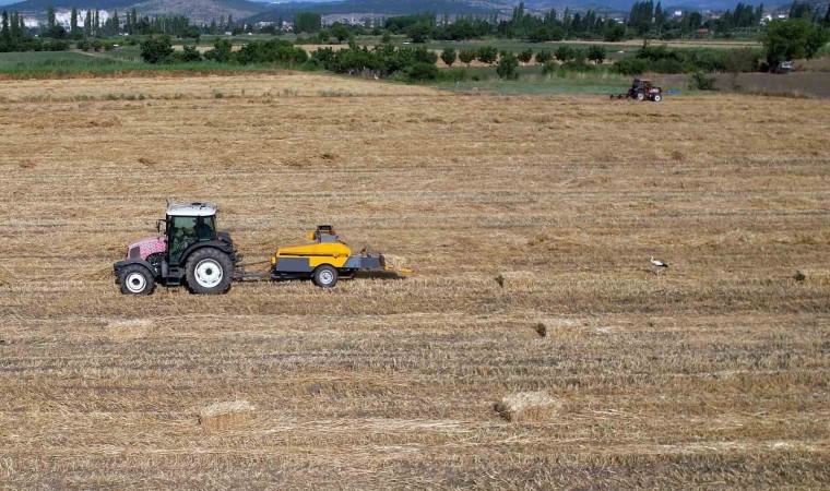 Sındırgı ilçesinin sembolü haline gelen bu Sağdıç leylek, hasat yapılan tarlada balya makinesi ve traktörleri izlerken bir dron tarafından kaydedildi. Hasat işlemi devam ederken leylek, balya makinesini dikkatle takip etti. Sındırgı ilçesinde yaklaşık 40 leylek yuvası bulunuyor ve hasat döneminde leylekler, tarlalarda biçerdöverlerin yanından ayrılmıyor, gözleriyle izliyorlar. Bu eşsiz manzaralar, Sındırgı'daki doğal yaşamın güzelliklerinden sadece biri.