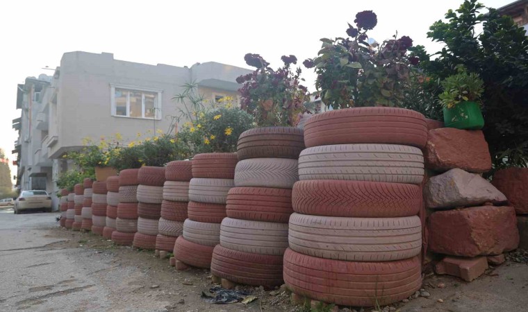 Sokaklardan topladığı atık lastiklerden çiçek bahçesi oluşturan Hüseyin Şaker, “Ben belediye personelim. Bizi kışın boş lastikleri toplamak için gönderirler. Çünkü bu boş lastikler içinde su biriktiği için sinek üremesine sebep olur. Ben de topladıklarım lastikleri eve getirdim. Lastiklerle dekor verip çiçeklendirdik. Depremden dolayı sıkıntılar büyükten sonra bu çadırı kurduk. Benim evim sağlam ama depremden dolayı bayağı ürküyoruz. Emek ister ve biz de boş zamanımızı değerlendirdik. Burada papatya, horoz ibiği, salon çiçekleri ve bayağı çiçek var. Bu şekilde yeşillendirmek için ağaçlandırdık. Burada ortalama 150 ila 200 lastik var. Bu lastiklerin hepsi atık ve değerlendirmek istedim” dedi.