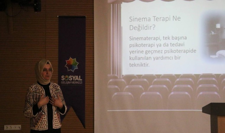 Klinik Psikolog Aslan sözlerinin devamında, “Sinema terapisi sizi geliştirir. Bu çalışma sizi ileriye taşıyan bir etkinliktir. Sinema terapisi tek başına psikoterapi ya da tedavi yerine geçmez. Psikoterapide kullanılan yardımcı bir yöntemdir. Sinema terapisi etki mekanizması 4 evreden oluşur. Bunlar özdeşleşme, katharsis (Duygu boşalması), iç görü ve bütünleşme evresidir. Ebeveyn tutumları, ergenlik, romantik ilişkiler, ölüm yas, teknoloji gibi farklı temalar sinema terapisinde ele alınabilir” ifadelerini kullandı.