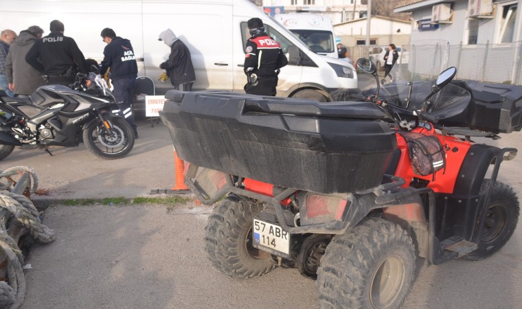 Edinilen bilgiye göre kaza, akşam saatlerinde Sinop kent merkezi mendirek mevkiinde meydana geldi. 57 ABR 114 plakalı ATV sürücüsü Alaaddin Ş. (57), geri geri gelirken dengesini kaybedip araçla beraber devrildi. Sürücüyü düşmüş halde gören çevredeki vatandaşlar durumu 112 sağlık ekiplerine bildirdi. Yaralı sürücü 112 sağlık ekiplerince Sinop Atatürk Devlet Hastanesine kaldırıldı.