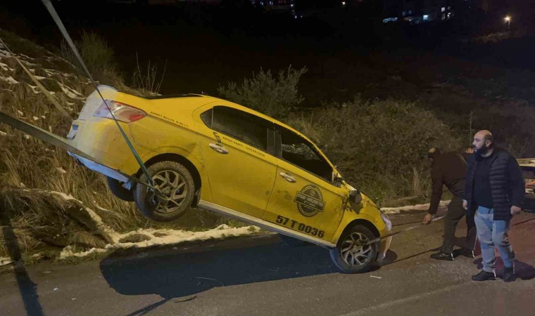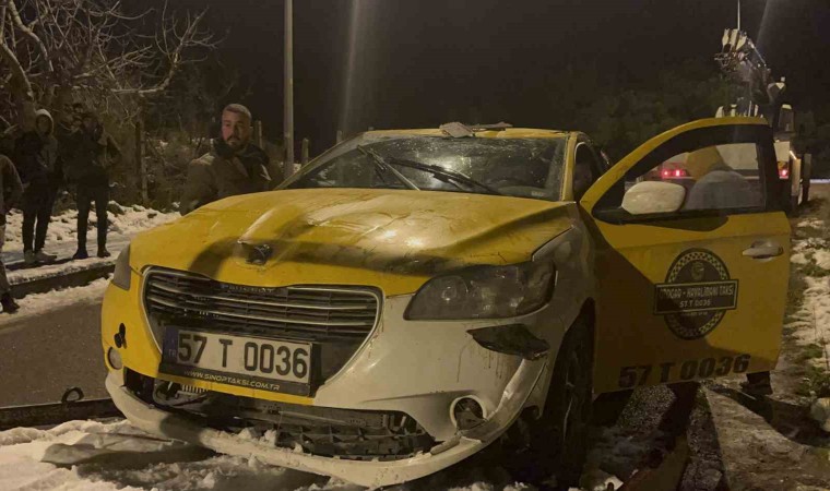 Sinop’ta buzlanma nedeniyle kayan ticari taksi takla attı. Kazada 1 kişi hafif yaralandı.