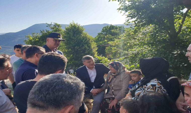 Sinop Valisi Mustafa Özarslan, protokol üyeleri ile birlikte yangının yaşandığı köye giderek incelemede bulundu.