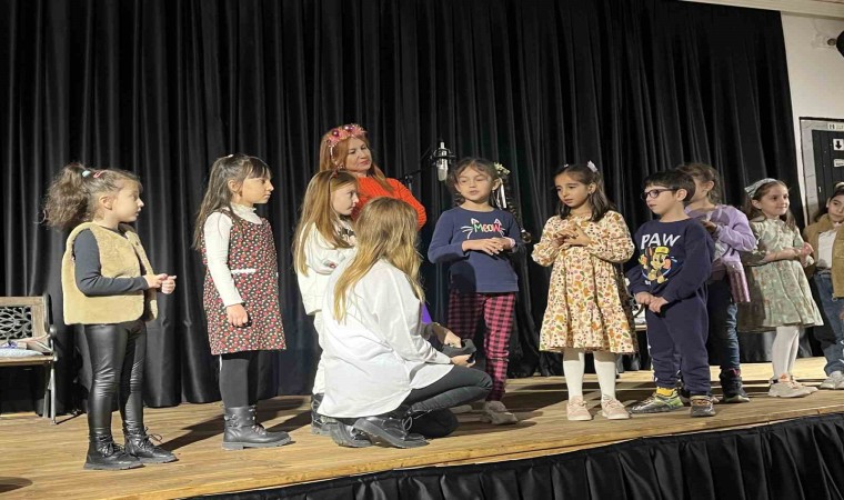 Sahneye çıkan öğrenciler, hazırlanan torba içerisindeki kağıtları sıra ile çekerek yazılı olan kelimelerden bir hikaye oluşturdular. Ardından kırmızı, sarı ve mavi ritim kartları ile şarkılar söyleyen çocuklar, kırmızı rengi gördüklerinde yüksek sesle, sarı rengi gördüklerinde düşük ses ile şarkılar söyleyerek eğlendiler.