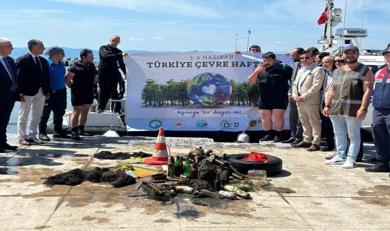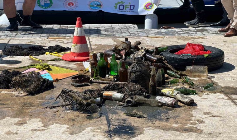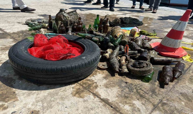 İskele mevkiinde yapılan dip temizliğinde suyun altından araç lastikleri, şişe, duba, uçurtma, oyuncak silah gibi atıklar çıkarıldı. Atıkların anında çıkan yengeç ve balık gibi canlılar da görevliler tarafından tekrar denize bırakıldı.