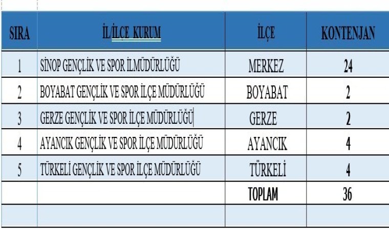 Sinop’ta Gençlik ve Spor İl Müdürlüğü bünyesine Toplum Yararına Çalışma Programı (TYP) çerçevesinde 36 kişi alınacak.