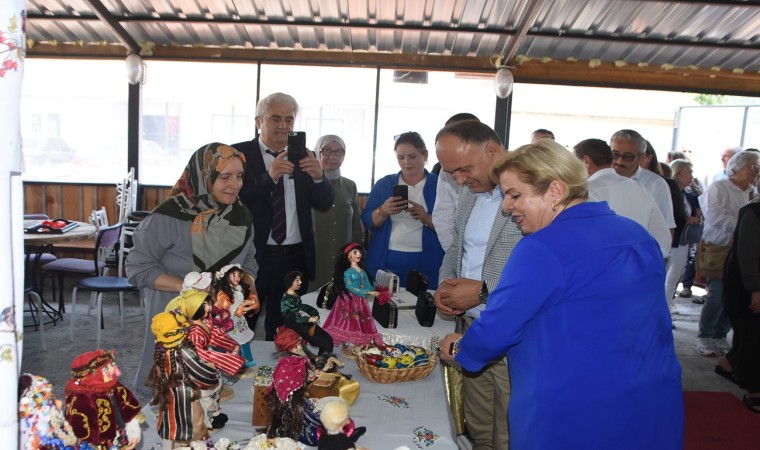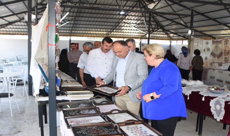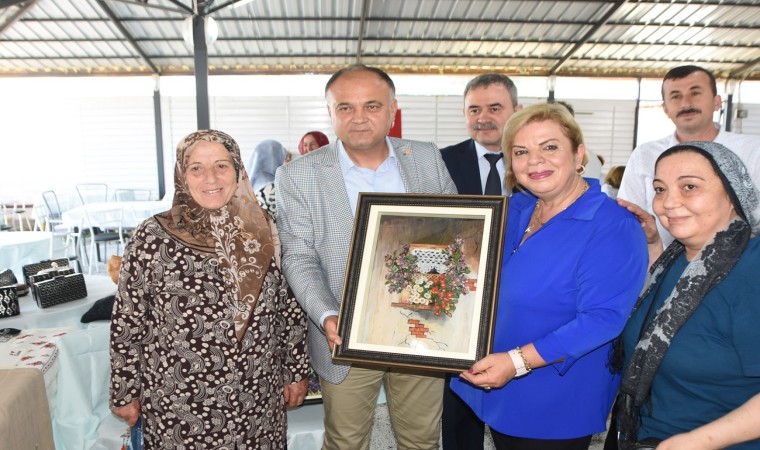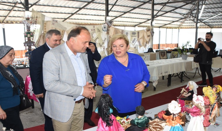 Mertoğlu Köyü Çok Amaçlı Salonda düzenlenen serginin açılışına usta öğreticisi Kıymet Sönmez, kursiyerler ve vatandaşlar katıldı.