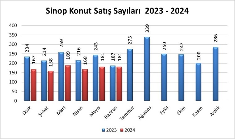 Sinop’ta Haziran ayında 181 konut satılırken, konut satışı geçen yılın aynı ayına yüzde 3,2 azaldı.
