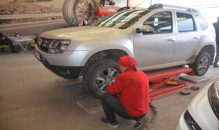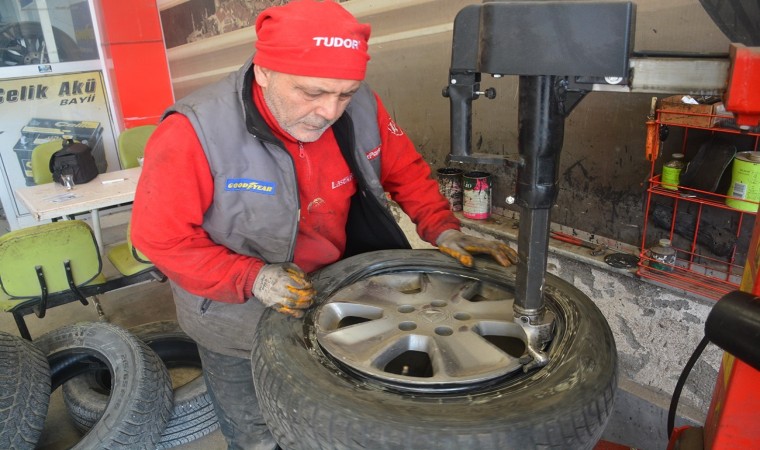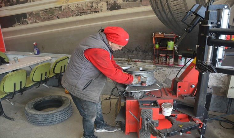Küçük Sanayi Sitesi’nde oto lastik satımı ve değişimi yapan rot balans ustası Hasan Üçüncüoğlu, lastiklerin değişimi için kar yağışının beklenilmemesi gerektiğini belirterek, kış lastiklerinin yol güvenliği için hayati önem taşıdığına dikkat çekti.