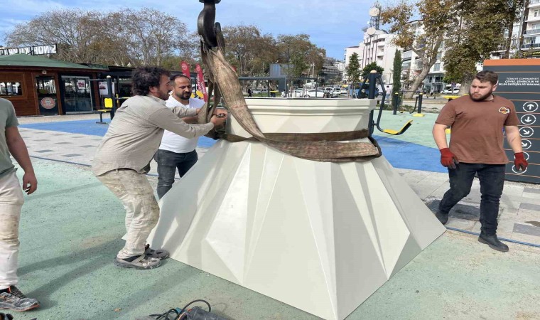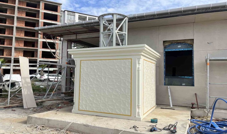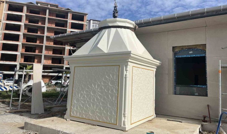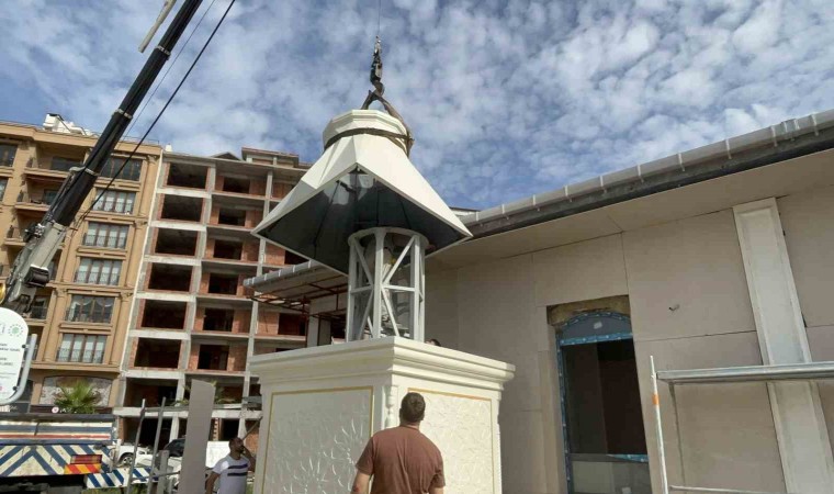 Sinop sahilinde Meydan Projesi kapsamında yapılan caminin minaresi, yerine yerleştirildi.