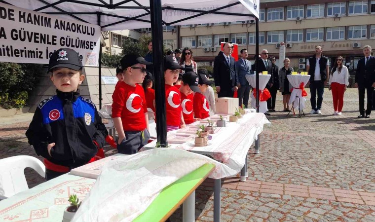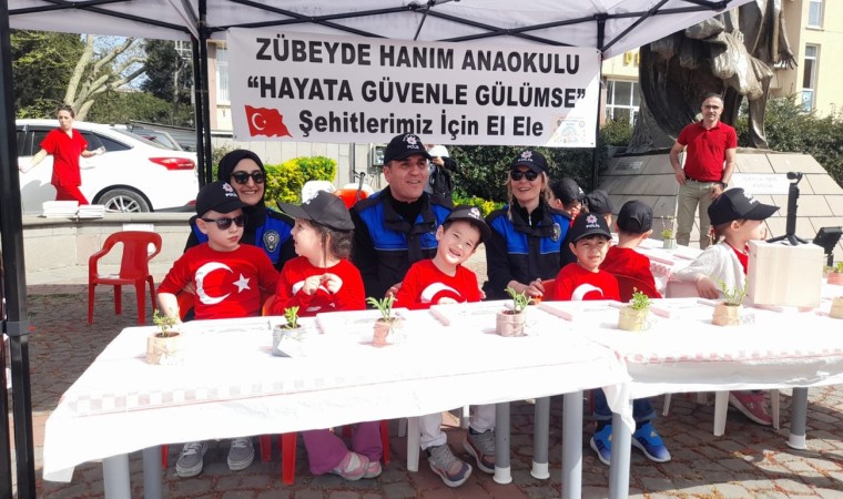 Gelirleri şehit ve gazi ailelerine bağışlanmak üzere kurulan stantta kendi emekleriyle hazırladıkları resim çerçevelerini ve sukulent bitkilerini satan minikler büyük takdir topladı. Sinop Zübeyde Hanım Anaokulu ile Sinop Emniyet Müdürlüğü’nün iş birliğinde “Hayata Güvenle Gülümse” etkinliği gerçekleştirildi. Dün Hükümet Meydanı’nda gerçekleşen etkinlikte minik öğrenciler, polis ekipleri ile birlikte kendi emekleriyle hazırladıkları resim çerçevelerini ve sukulent bitkilerinin satışını yaptı. Tüm çerçeve ve sukulentlerin satıldığı etkinliğin gelirleri şehit ve gazi ailelerine bağışlandı.