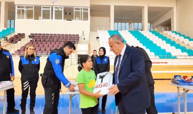 Kurs kapsamında Emniyet Müdürü Tarıkhan Çetiner ve Gençlik ve Spor İl Müdürü Mehmet Kalyon, Gazi Çelebi Spor Salonu’nda sporcu gençlerle bir araya geldi. Burada sporculara Emniyet Müdürlüğünce özel hazırlanan, eşofman takımları, ayakkabı ve tişörtler hediye edildi. Emniyet Müdürü Çetiner, genç sporculara yaptığı konuşmada, “Toplum Destekli Polislik Şubemiz ile birlikte bir proje geliştirdik. Bu projede Sinop’taki çocuklara spor eğitimi verdirmeyi istedik. Değerli hocalarımızın destekleriyle sizleri iyi birer sporcu olarak görmek istiyoruz” dedi.