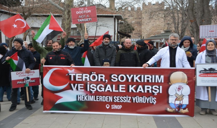 Sinop’ta sağlık çalışanları, Gazze’ye yönelik saldırılarını protesto etmek amacıyla "sessiz yürüyüş" düzenledi.