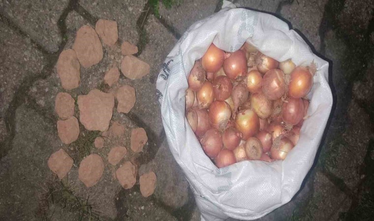 Sinop’un Erfelek ilçesinde soğan satan kimliği belirsiz şahıslardan soğan satın alan Nazmiye Çil, soğan çuvallarından çıkan taşları görünce şoke oldu.