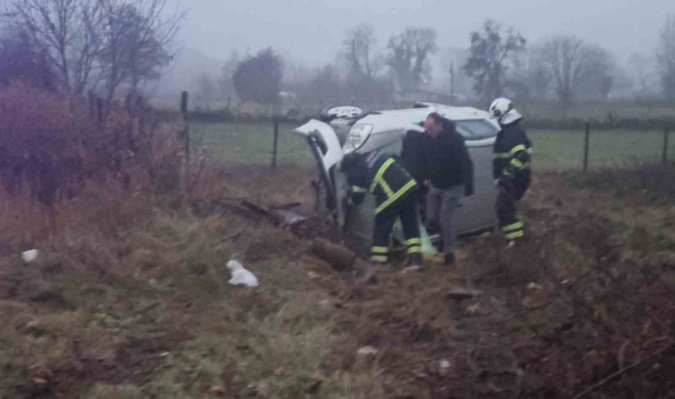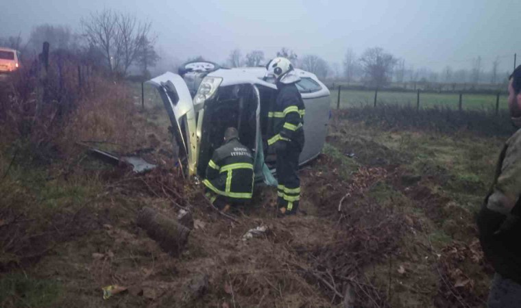 Sinop’ta yoğun sis ve kaygan yol nedeniyle kontrolden çıkan otomobil tarlaya devrildi. Kazada 2 kişi yaralandı.