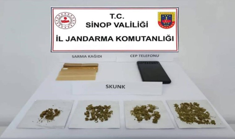 Sinop İl Jandarma Komutanlığı ekipleri uyuşturucu tacirlerine yönelik operasyonlarına devam ediyor. Sinop’un Türkeli ilçesinde yapılan aramada 20 gram skunk uyuşturucu madde, 1 adet uyuşturucu sarma kağıdı ile 1 adet cep telefonu ele geçirildi. Yakalanan 1 şüpheli şahıs hakkında adli işlemler başlatıldı.
