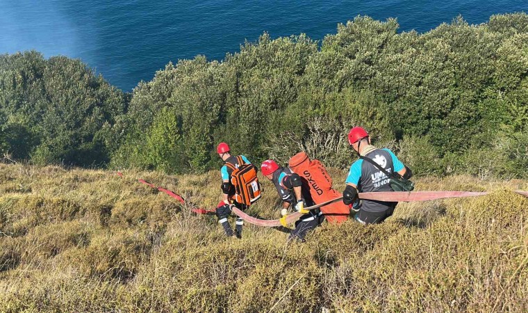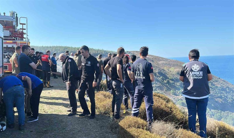 Sinop’ta otluk alanda çıkan yangına müdahale eden itfaiye personeli uçurumdan düştü.