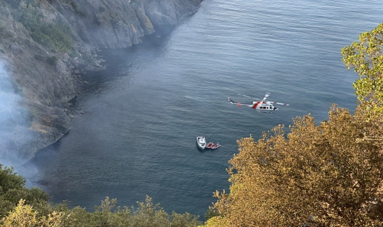 Öte yandan, 1 adet Sahil Güvenlik AB-412 helikopteri, kurtarma botu ve Deniz Polis Timi ile birlikte uçurumdan düşen personelin arama ve kurtarma çalışmalarının aralıksız olarak sürdürüldüğü bildirildi.